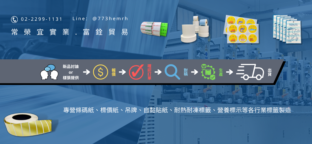 專營條碼紙、標價紙、吊牌、自黏貼紙、耐熱耐凍標籤、營養標示等各行業標籤製造